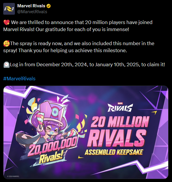 Reaching 20 million players in just 10 days isn’t just a milestone; it’s a testament to the power of innovation, storytelling, and community engagement. Marvel Rivals has redefined what a Hero Team-based PVP Shooter game can be, setting a new benchmark for the industry. Whether you’re a die-hard Marvel fan, a competitive gamer, or someone just looking for a thrilling new experience, Marvel Rivals invites you to join the action and see why millions have already answered the call.